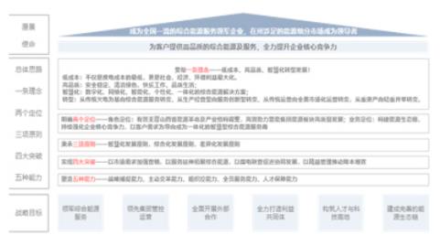 1. 通過深入詳實的內(nèi)外部調(diào)研,綜合運營多種分析工具全面系統(tǒng)分析了宏觀環(huán)境、電力能源行業(yè)發(fā)展現(xiàn)狀與趨勢、區(qū)域環(huán)境、政策環(huán)境等,為客戶描繪了總體戰(zhàn)略藍圖,既貫徹一條理念,明確兩個定位,秉承三項原則,實現(xiàn)四大突破,塑造五種能力。
