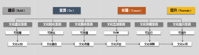 BDEP模型是愛(ài)維龍媒咨詢通過(guò)多年企業(yè)文化咨詢經(jīng)驗(yàn)的積累所總結(jié)出來(lái)的一套全面、系統(tǒng)的文化管控模型。該模型以經(jīng)典的PDCA邏輯思維為基礎(chǔ),結(jié)合組織文化的特點(diǎn)從4個(gè)維度6大系統(tǒng)24個(gè)方面詳細(xì)歸納和總結(jié)組織文化所涉及的各個(gè)層面,通過(guò)各個(gè)維度的協(xié)調(diào)與配合,讓文化可統(tǒng)籌、可轉(zhuǎn)化、可傳播、可診斷、可運(yùn)行、可提升,真正推進(jìn)文化落地。