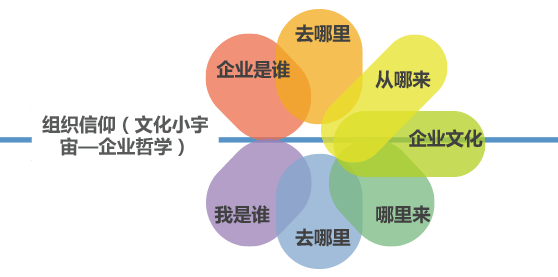 員工個(gè)體的組織信仰形成過(guò)程,首先通過(guò)企業(yè)哲學(xué)系統(tǒng)內(nèi)涵的構(gòu)建,即回答“我們的企業(yè)是做什么的?” “我們的企業(yè)從哪里來(lái)?”“我們的企業(yè)要去向何方?”三個(gè)哲學(xué)命題,之后將企業(yè)哲學(xué)的內(nèi)涵落實(shí)在企業(yè)文化之中,并通過(guò)文化滲透與落地過(guò)程,讓員工對(duì)三個(gè)哲學(xué)命題的思考與企業(yè)哲學(xué)相一致,完成組織信仰的落地轉(zhuǎn)化過(guò)程。