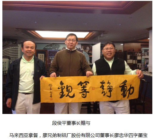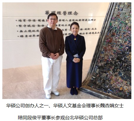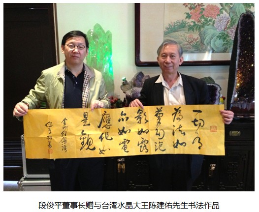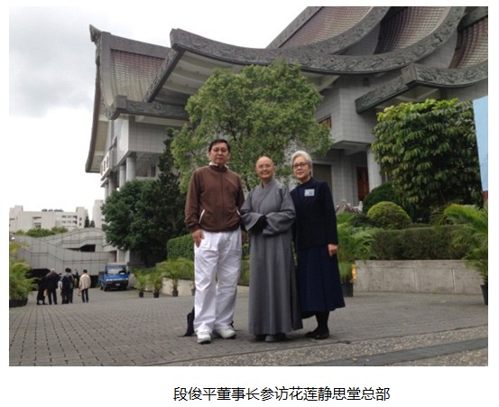 在赴臺參訪中,段俊平董事長與慈濟基金會創(chuàng)辦人、臺灣佛教高僧證嚴法師、華碩公司創(chuàng)辦人之一魏杏娟、馬來西亞拿督、廖兄弟制鋁廠股份有限公司董事長廖忠華、臺灣大愛電視臺著名主持人靳秀麗、臺灣水晶大王陳建佑等臺灣知名企業(yè)家和文化學(xué)者進行了一系列的文化交流活動,為海峽兩岸共同弘揚中國傳統(tǒng)文化、推助慈善事業(yè)的發(fā)展做出了積極的貢獻。