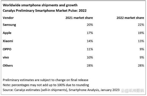 2022年市場(chǎng)全球手機(jī)市場(chǎng)占有率