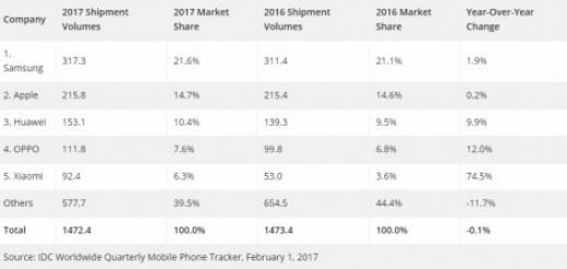 2017年市場(chǎng)全球手機(jī)市場(chǎng)占有率